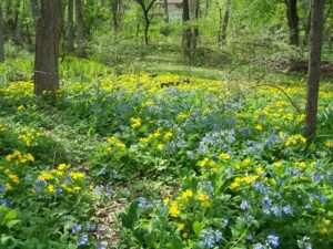Description: As springtime carpets the woodlands with the blues of Virginia Bluebells and the yellows of Celandine Poppies, you are invited to walk our forest trails. Whether you’re exploring the pine forest in the front yard or the oak-hickory forest in the back, there will be many species of spring ephemerals to seek out. Wild Geraniums, Trilliums, Wild Ginger, Jack-in-the-Pulpits, and Mayapples will be just some of the wildflowers blooming. This property, once the home of Bill and Ardath Wingate, definitely puts on its best show in the spring. Come see it! This is not an open house. Guided walks led by the homeowners begin at 10am and 2pm. All WPPC Walks on the Wild Side are free of charge and no pre-registration is required.